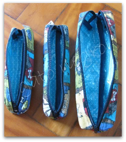 Este conjunto de estojos, é um charme! São 3 estojos que cabem um dentro do outro, para levar o que quiser dentro deles, todos com forro plastificado, fácil de lavar, não estraga se alguma caneta estourar, se sair a tampa do batom.
